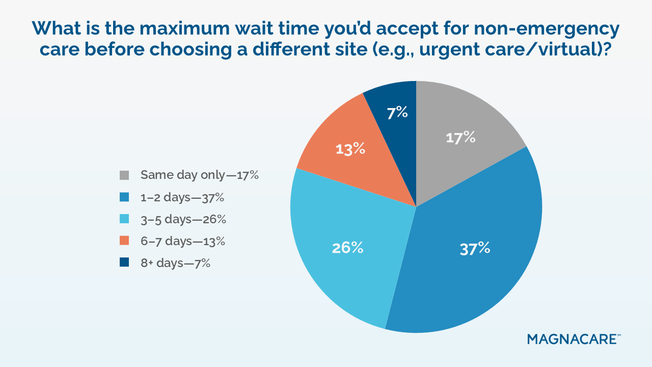 - Short Wait Times Expected: More than a third of patients (37%) say an acceptable wait time for routine visits is just one or two days, while 17% say only same-day access is acceptable.